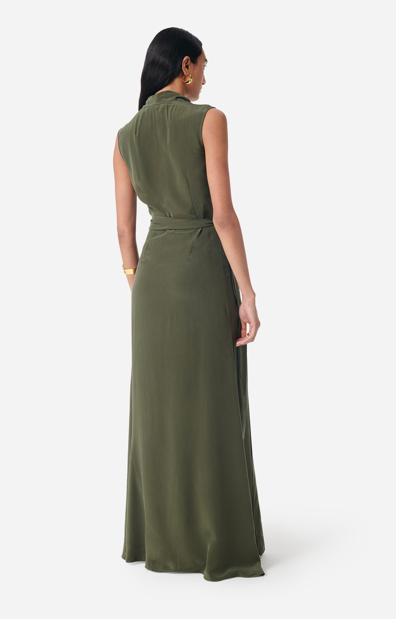 Un abito lungo fluido dal look elegante e femminile, pensato per valorizzare naturalmente la figura.