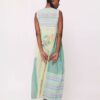 Abito midi senza maniche, con scollo a V con tasche laterali. Interamente realizzata a mano, dalla tessitura alla tintura fino alle ultime rifiniture, passando attraverso le mani di artigiani di varie parti dell’India utilizzando abilità e tecniche tradizionali che differiscono da regione a regione.