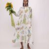 Abito lungo con abbottonatura a polo, maniche lunghe e tasche laterali. Interamente realizzata a mano, dalla tessitura alla tintura fino alle ultime rifiniture, passando attraverso le mani di artigiani di varie parti dell’India utilizzando abilità e tecniche tradizionali che differiscono da regione a regione. Realizzato con la tecnica block print, sulla base dei disegni realizzati con acquerelli raffiguranti vari tipi di fiori.