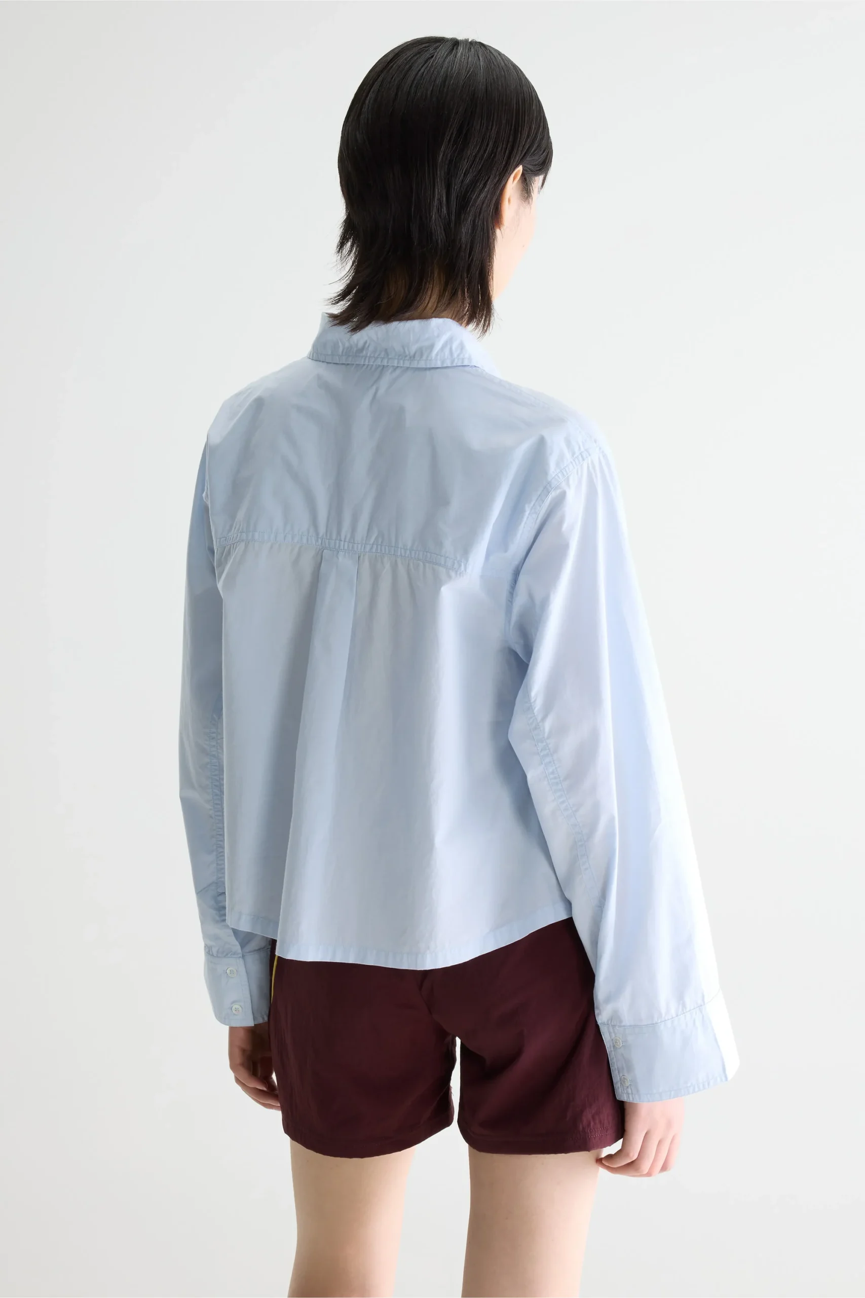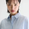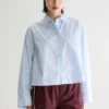 Camicia corta a righe dalla vestibilità rilassata con colletto e chiusura con bottoni.
