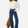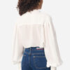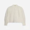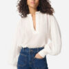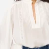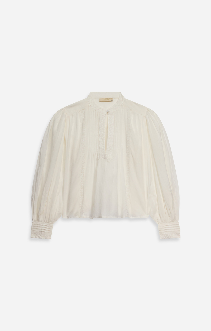 Blusa fluida in tessuto in voile di viscosa jacquard con effetto leggermente strutturato con collo alto e scollo a V, inserti plissettati sul davanti con le sue pieghe raffinate e il suo spirito romantico, polsi abbottonati,