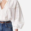 La blusa in misto cotone Dahlia dall’aspetto vintage si distingue per i suoi dettagli meticolosi e puliti. Caratterizzata da una gamma di tecniche di plissettatura, ricami, arricciature e pizzi, questo capo è già un capo preferito del guardaroba. Il suo taglio corto a trapezio crea un look delicato, arioso e spumoso. Il tocco in più? Lo stile smock ed elasticizzato delle maniche ti permette di giocare con la silhouette e il volume di queste maniche a sbuffo.