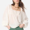 Una blusa boho-chic con una sorprendente scollatura quadrata, maniche a sbuffo e vestibilità ampia e dritta e dettagli ricamati.