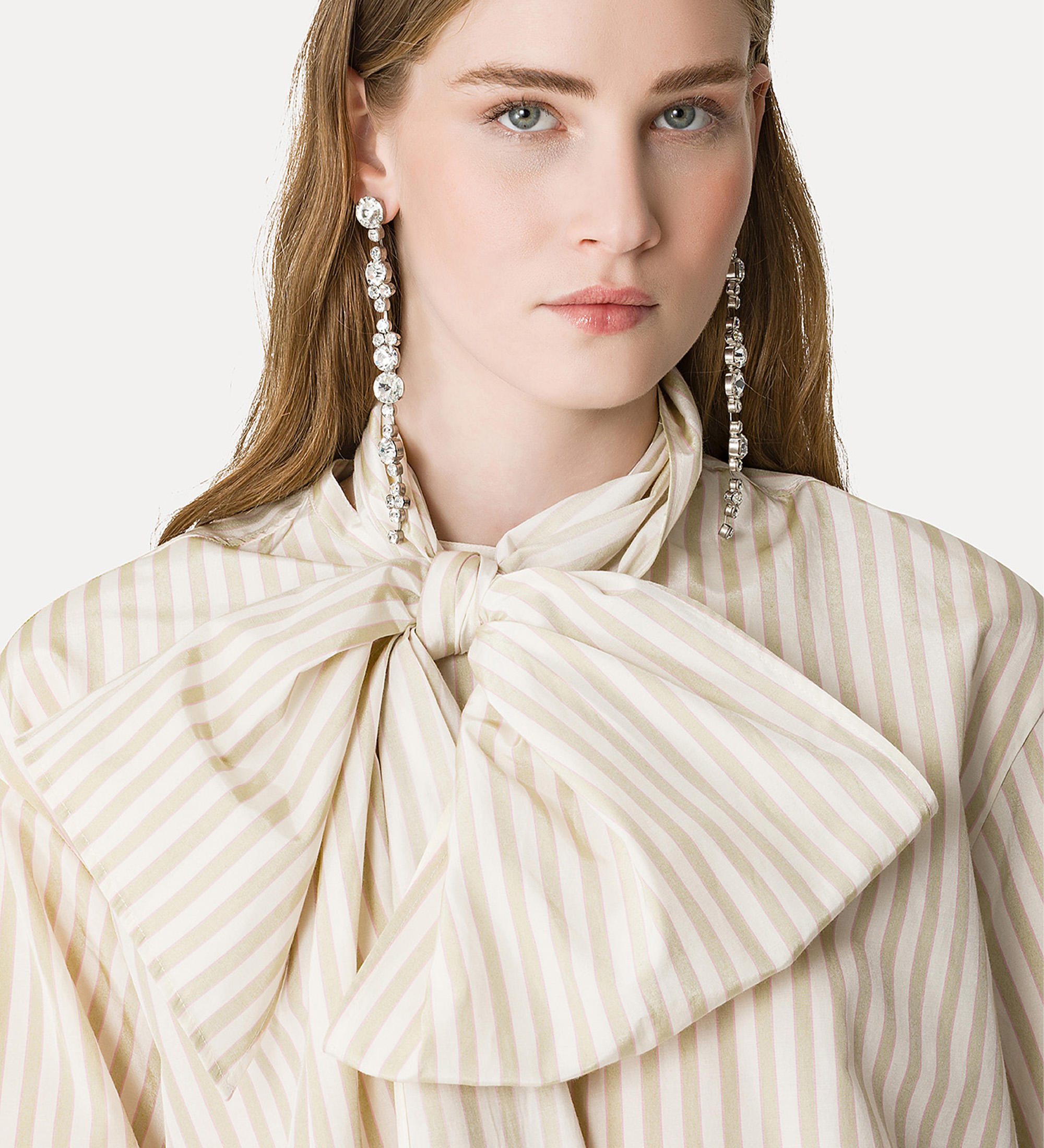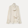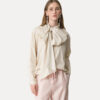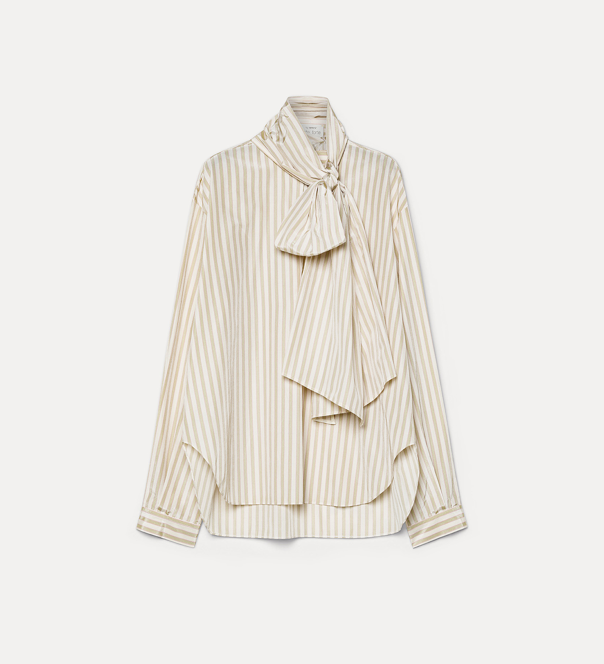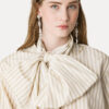 spalla scesa e un fresco motivo di righe riviera definiscono questa camicia in taffetà con motivo a righe e fiocco rimovibile. ampia nel volume oversize, gioca con la freschezza del tessuto e i suoi bagliori semi lucidi e le linee stondate e asimmetriche al fondo. piccolo nastro rimovibile da annodare al collo