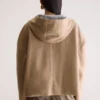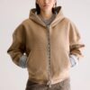 Felpa oversize in pile spazzolato con cappuccio, cerniera, tasche a marsupio e orlo con orlo grezzo