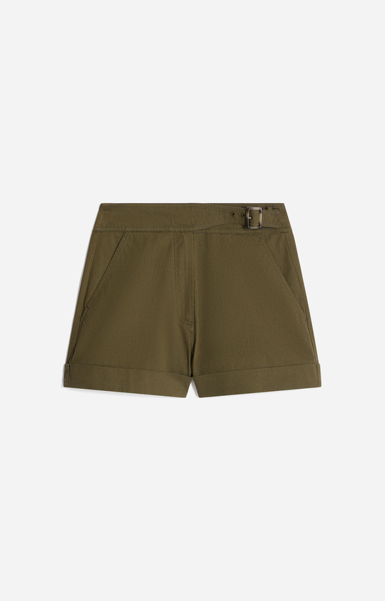Pantaloncini strutturati, pensati per unire comfort e stile per l’uso quotidiano. Vita alta, taglio dritto, chiusura con cerniera e bottone,