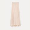poetica e trasparente, la gonna lunga in tulle plissé interpreta la visione poetica della femminilità firmata forte_forte. morbida nelle linee, con elastico in vita e zip posteriore per un look pulito, è più lunga sul retro per un effetto di coda delicato, decisamente evening. per stupire, day and night. con sottogonna interna on tone.