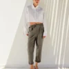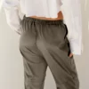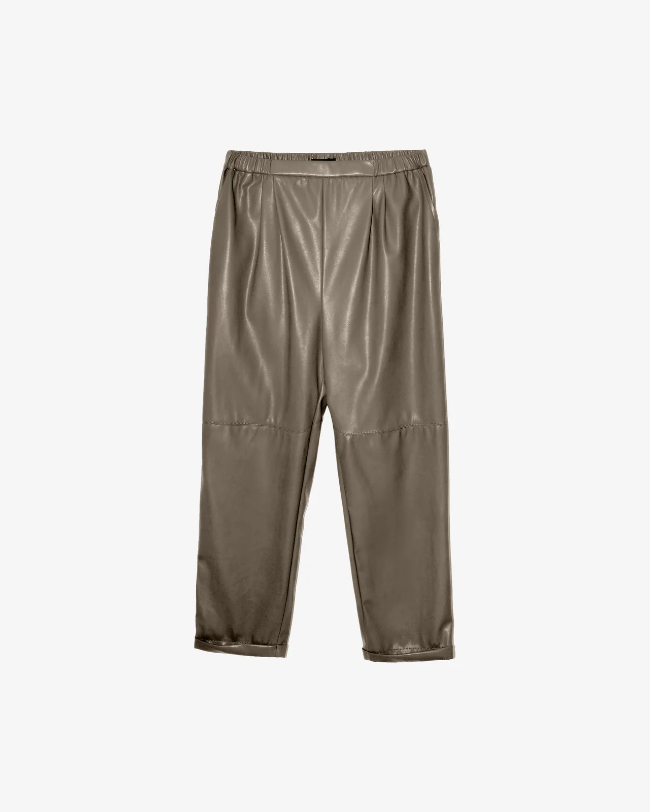 Pantaloni a gamba dritta in morbida ecopelle color kaki, dalla vestibilità rilassata e confortevole. L’elastico in vita ne facilita la vestibilità, mentre le discrete tasche laterali e i piccoli risvolti sugli orli aggiungono un tocco di raffinatezza. Questo capo casual-chic è perfetto da abbinare a una maglia morbida o a una camicia fluida per creare un contrasto di texture.